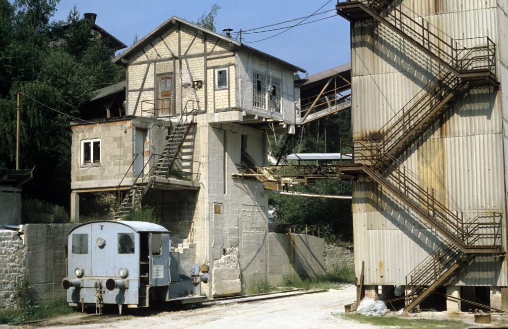 Werkslok der Taunus-Quarzit-Werke Saalburg am 4. Juli 1987 im Werksgelände